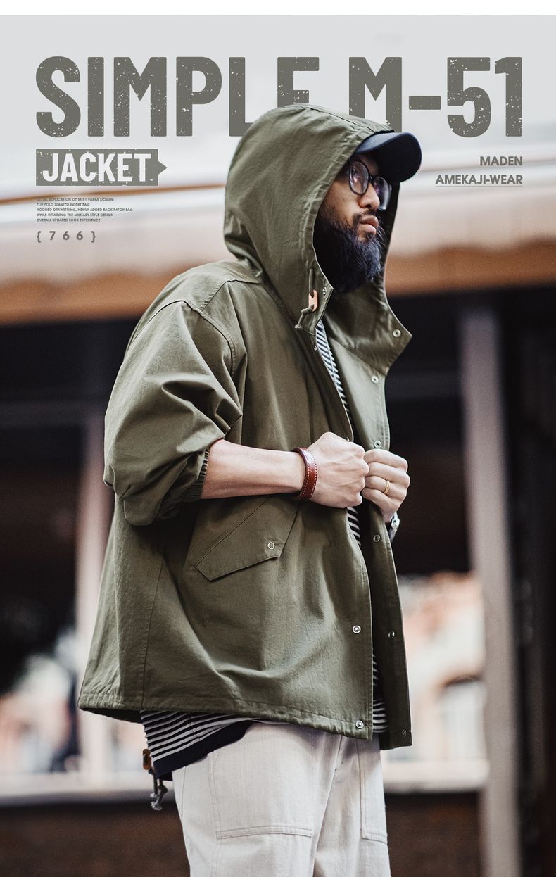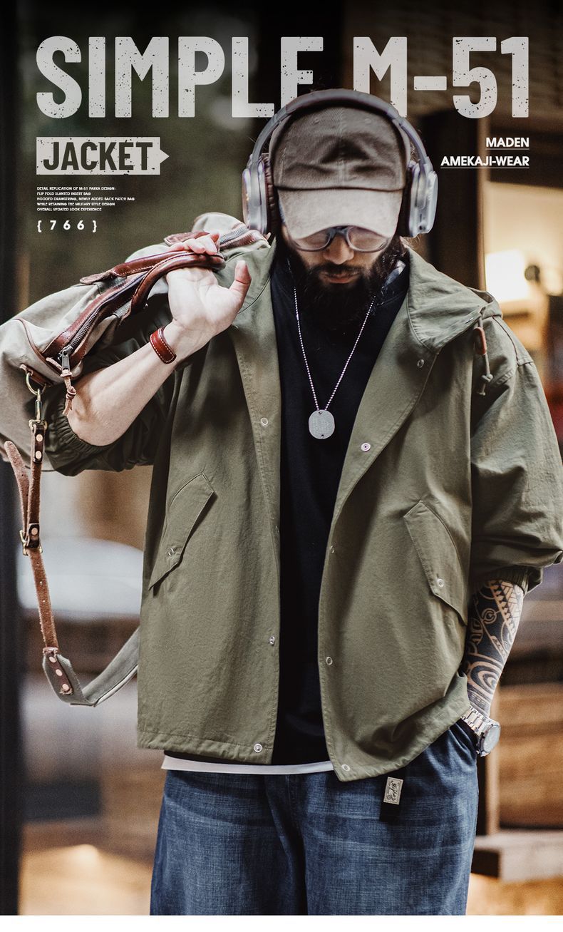 Retro M51 Military Jacket Vintage Fishtail Hooded Workwear Coat