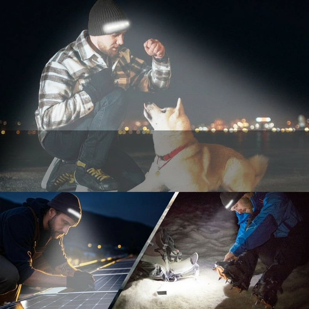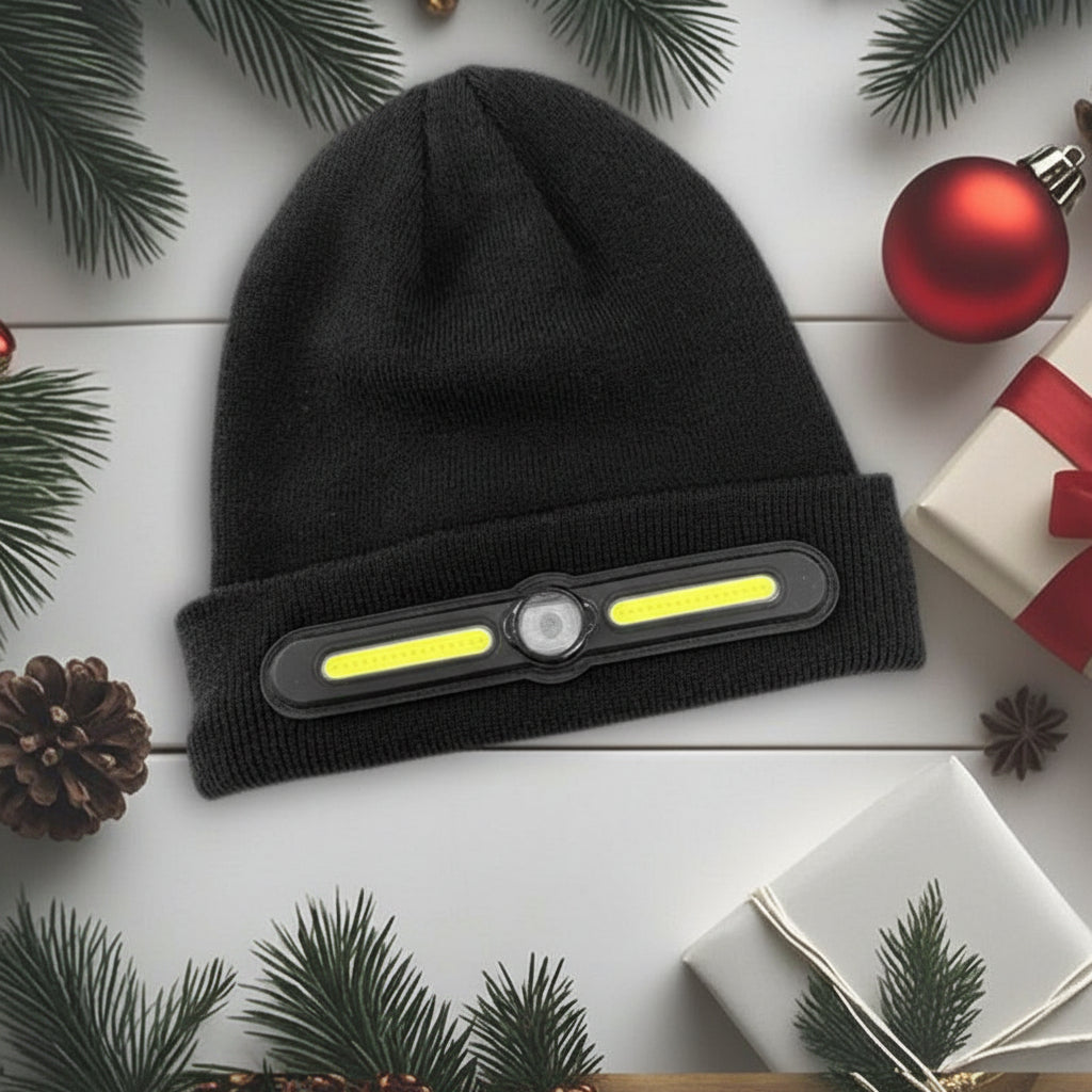 COB Headlamp Warm Beanie – 2-in-1 Winter Knitted Hat with Built-In Warning Light & Rechargeable LED