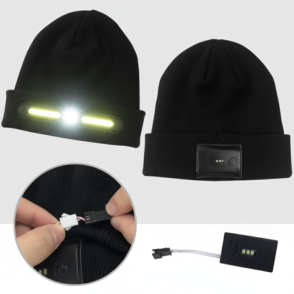 🔥 1. 2-in-1 Design — Warm Hat + Headlamp