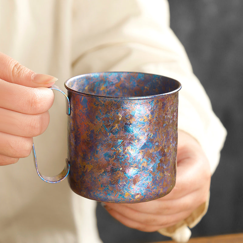 With a capacity of 300ml and a simple minimalist silhouette, this mug is perfectly sized for tea, coffee, or casual brewing. Its heat-resistant construction ensures comfortable use, while the pure titanium material preserves the true flavor and aroma of your beverage without any metallic aftertaste.