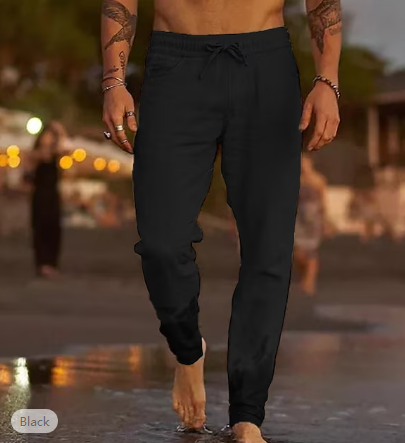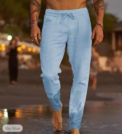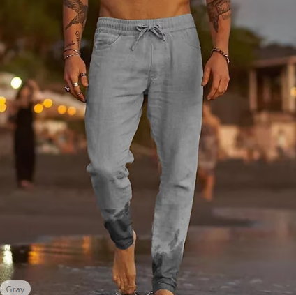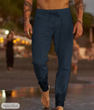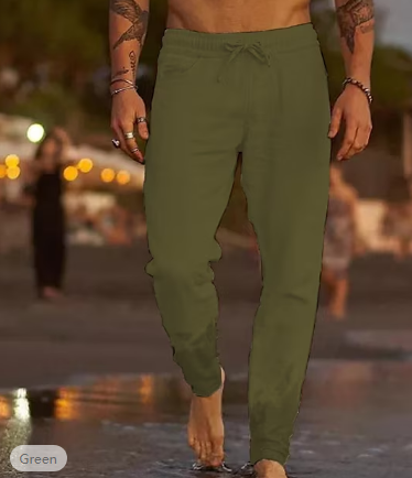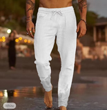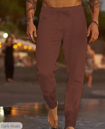 Men's Linen Pants Trousers Summer Pants Beach Pants Pocket Drawstring Elastic Waist Plain Comfort Soft Daily Weekend Linen / Cotton Blend Streetwear Casual Dark Khaki Light Khaki Micro-elastic