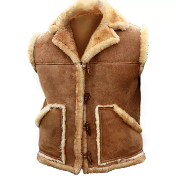 Men's Outdoor Fleece Warm Pocket Button Sheepskin Gilet
