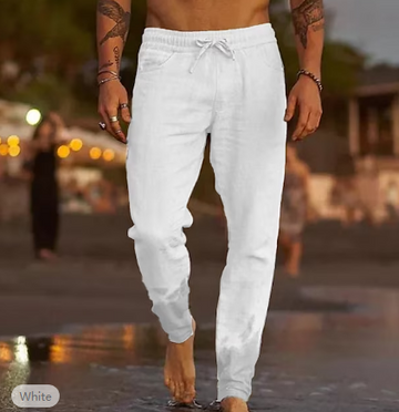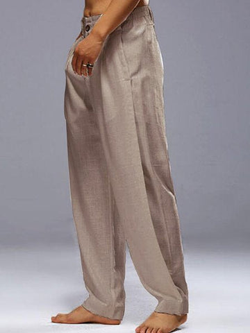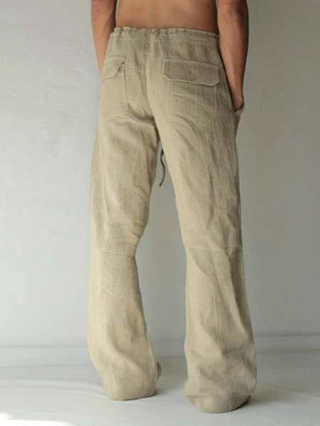 Men's Cotton Linen Elastic Waist Breathable Comfort Drawstring Casual Trousers