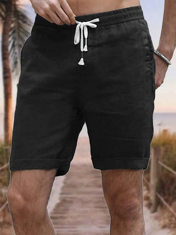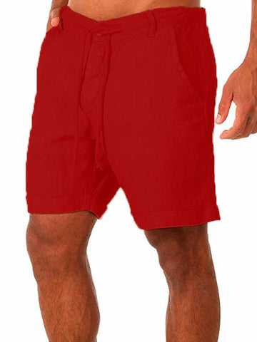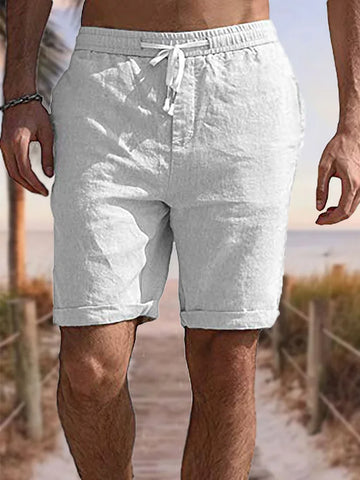 Men's Cotton Linen Style Elastic Waist Casual Shorts