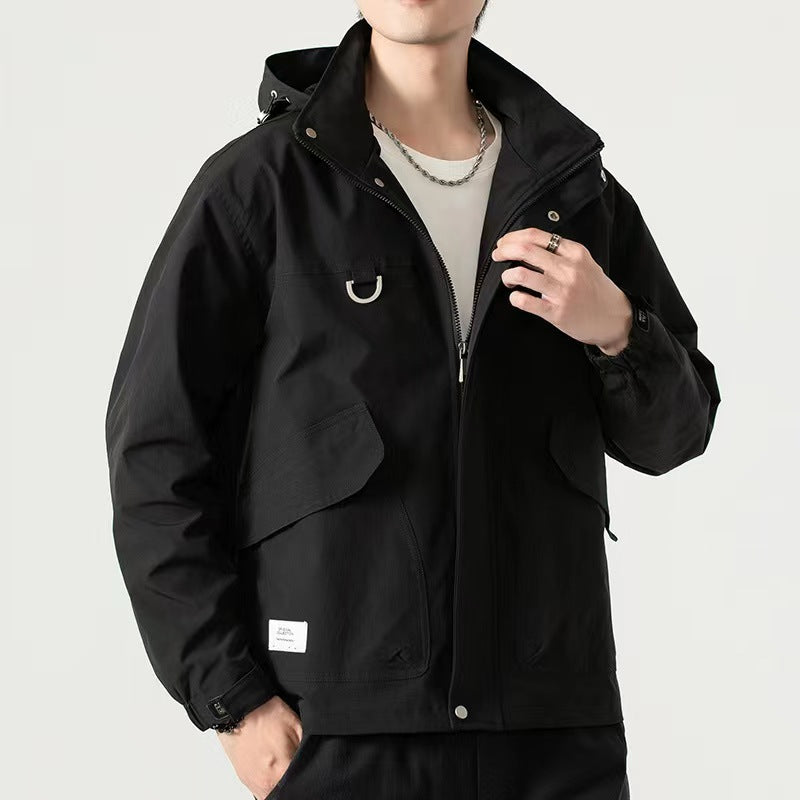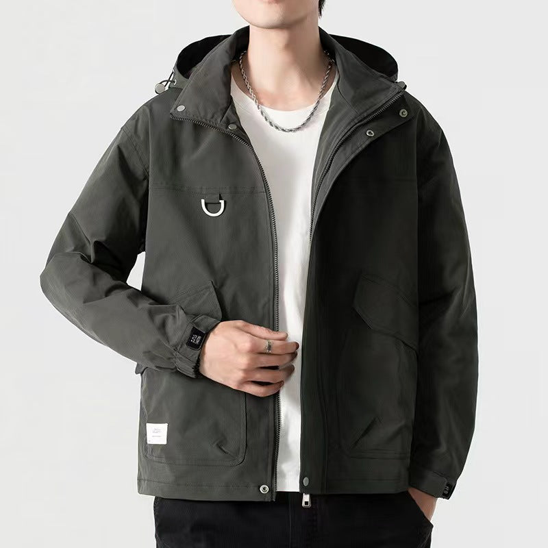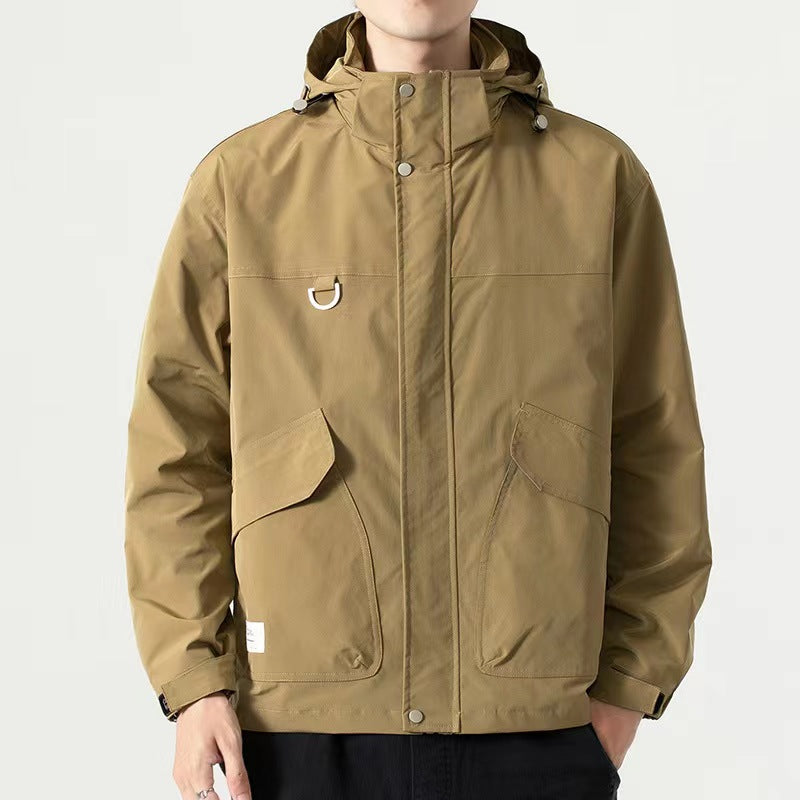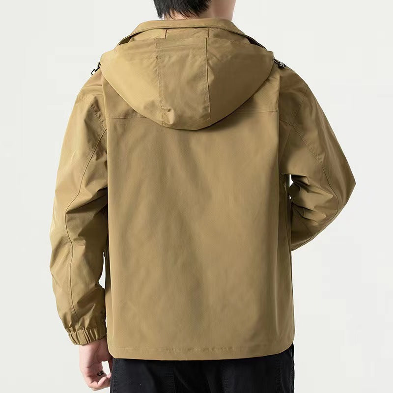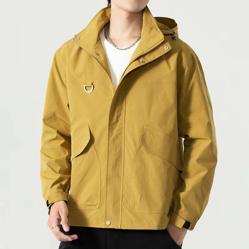 Men's Mid-length Plus Waterproof And Oil-proof Outdoor Hooded Jacket