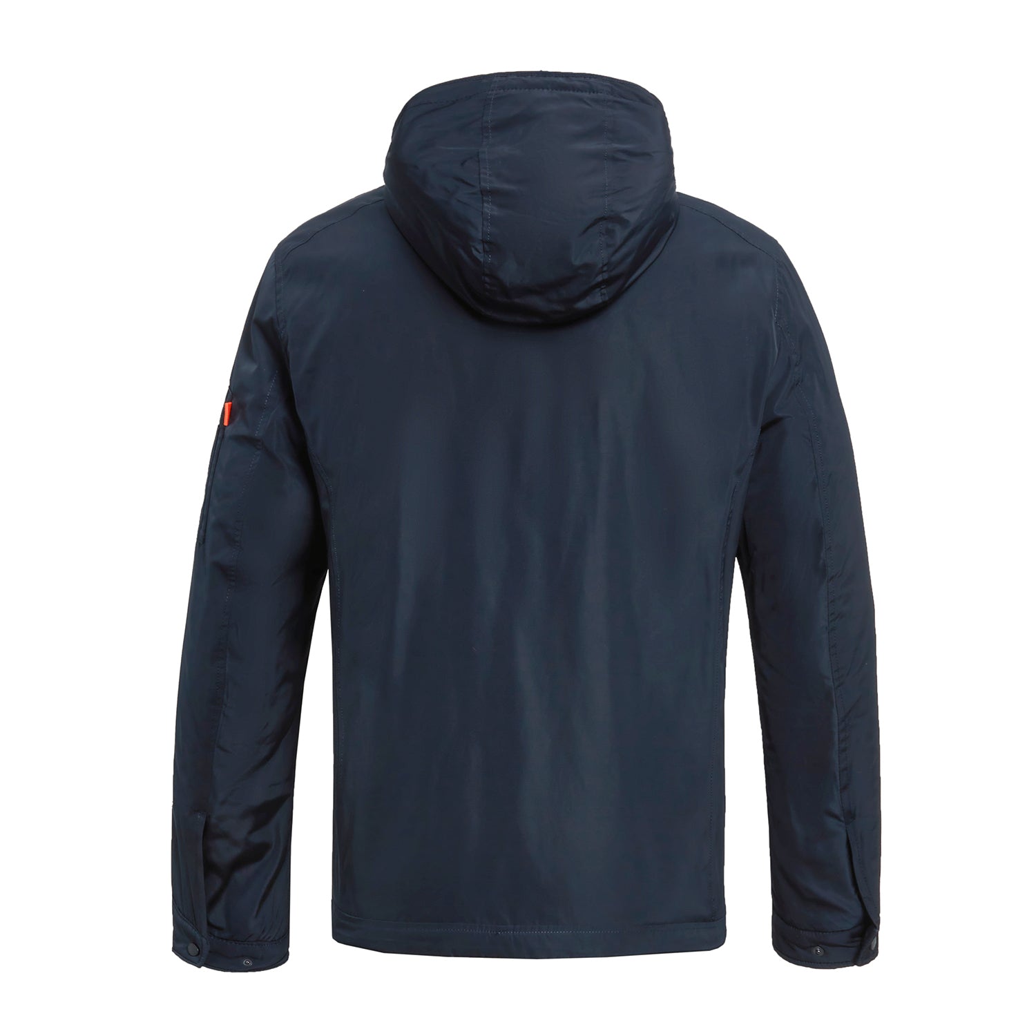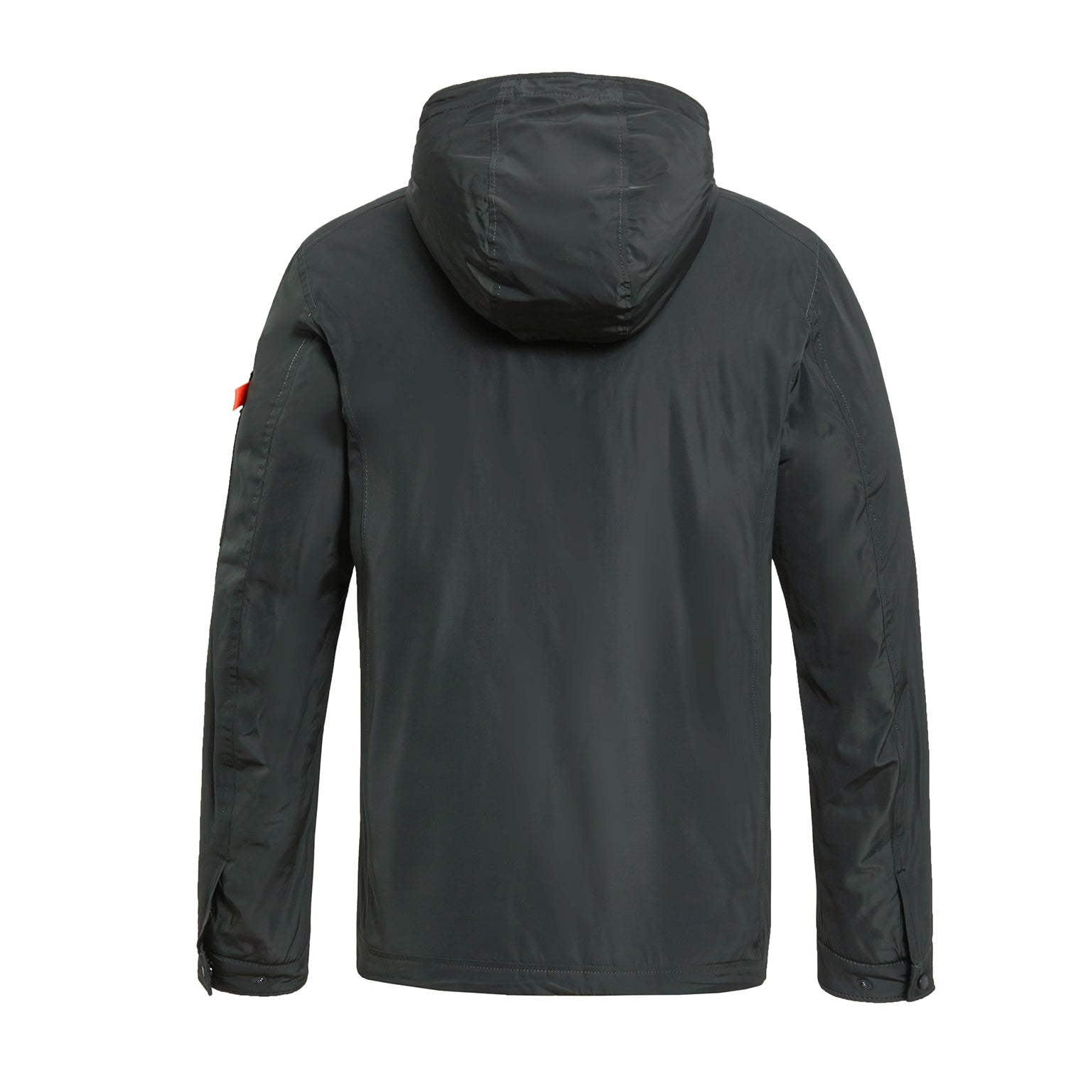 Featuring an elastic hem and adjustable button cuffs. the jacket has two front pockets. an arm pocket. and two inner pockets. Windproof and water-repellent. it is cut for a loose fit that allows you to enjoy the freedom of movement.