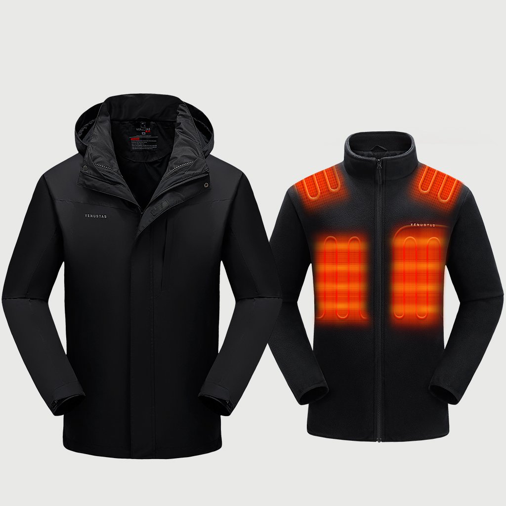 Keep the adventure going on even when the weather gets unpredictable! The all-purpose heated jacket for men provides superior. cross-seasonal comfort. The waterproof shell & the inner fleece heated clothing can be worn together or separately.