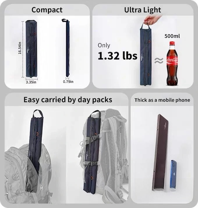 Ultra-Compact Storage – Only 2cm thick when folded, fits easily into any backpack.