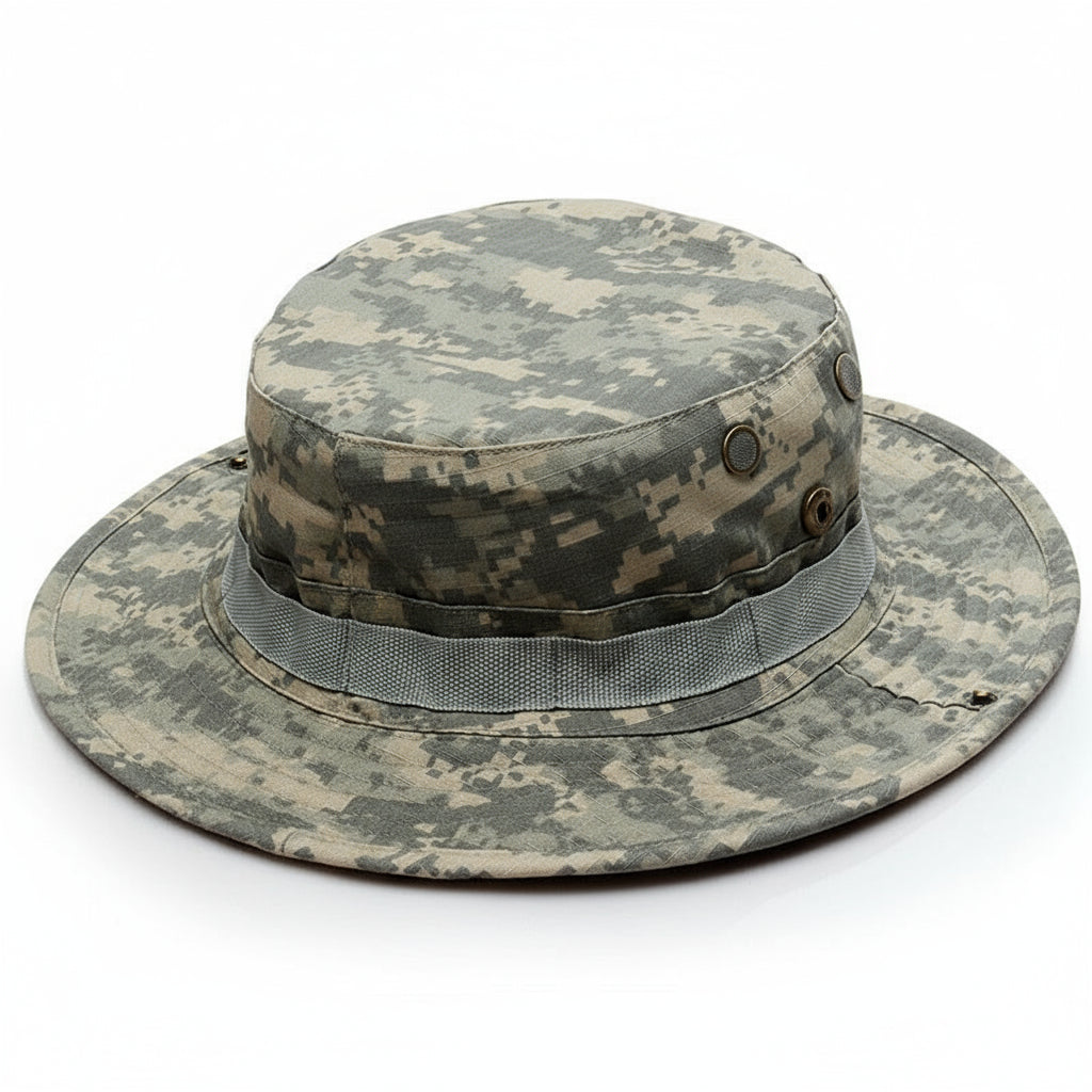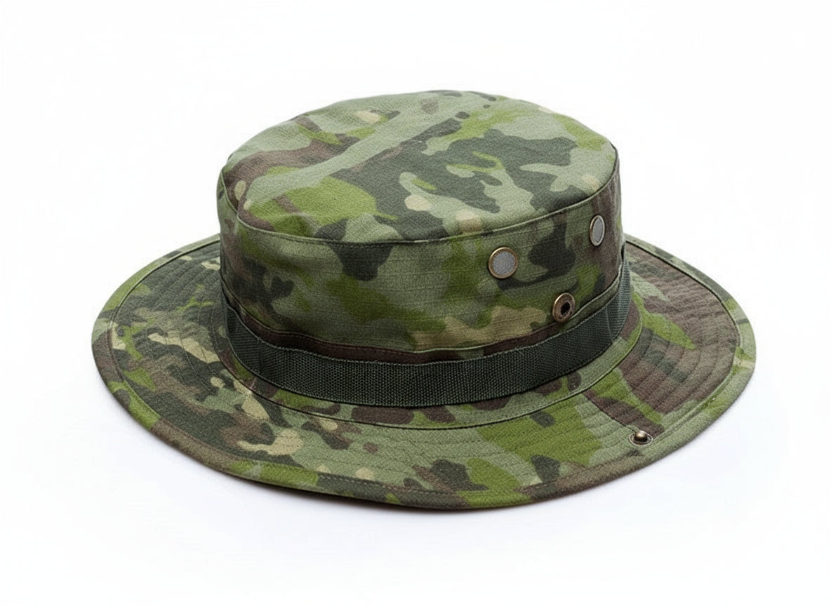 Stay protected and stay cool with this Military Fan Tactical Camouflage Boonie Hat — a must-have for outdoor enthusiasts and military-style fans.