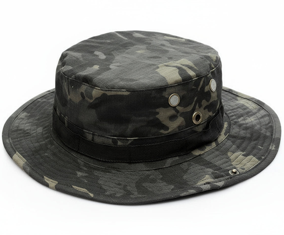 Military Tactical Camouflage Boonie Hat – Outdoor Sun Hat for Hiking, Mountaineering & Airsoft, Breathable Nylon Round-Brim Hat