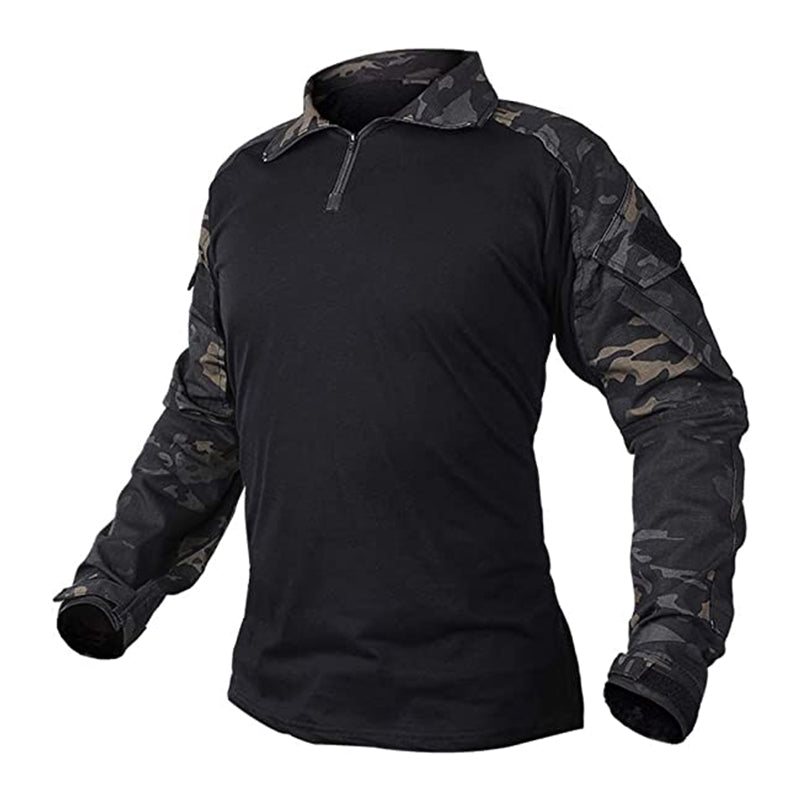 It is a professional G3 combat shirt. MultiCam reduces visual and IR signature. Large storage pockets on each arm. outside the pocket. it has a big velcro which can put on kinds of badges like team logo. national flag. blood type badge... Sleeves come with concealed elbow pads. The velcro tape can adjust the size of the cuff.