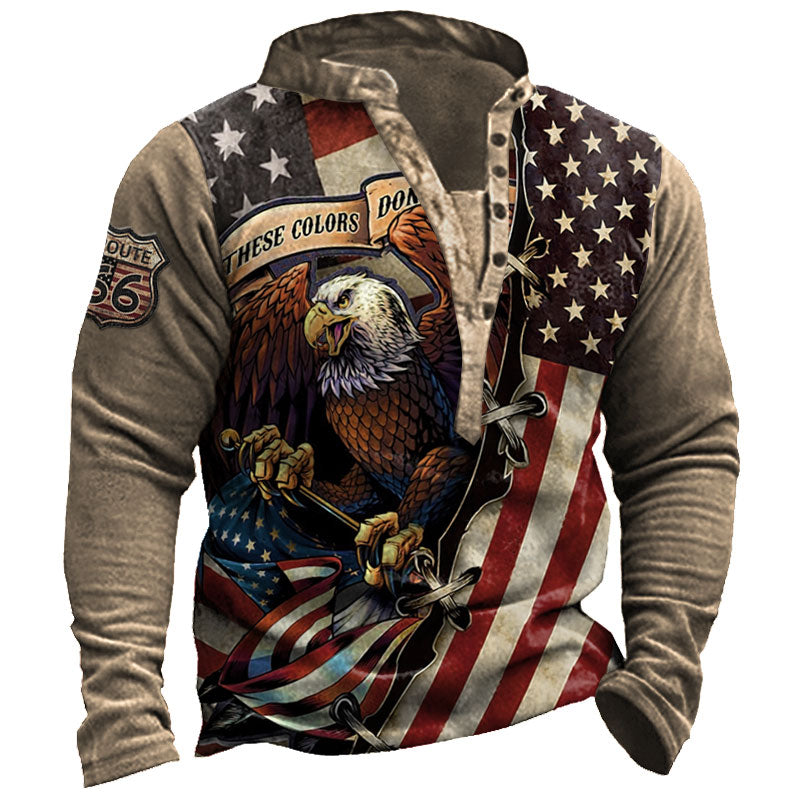 Men's American Eagle Route 66 Print Henley Sweatshirt