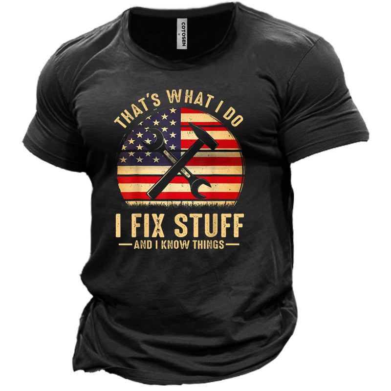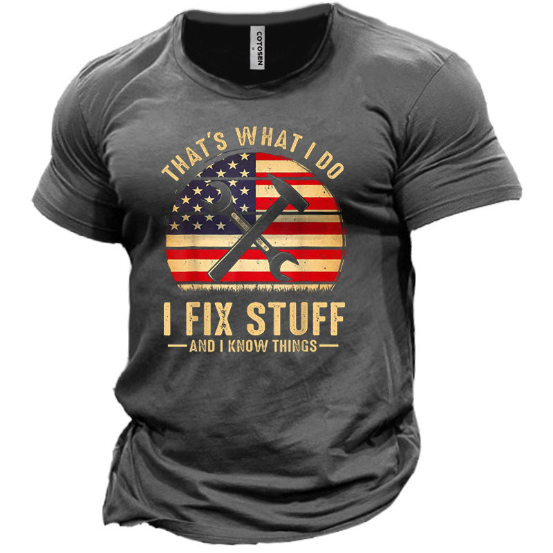 Men's That's What I Do I Fix Stuff I Know Things Print Cotton T-Shirt