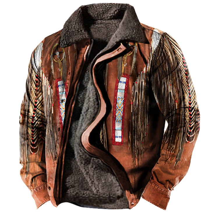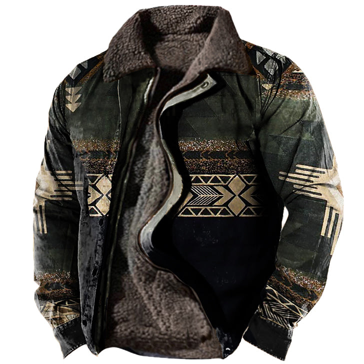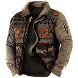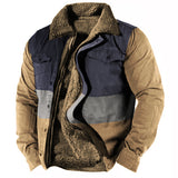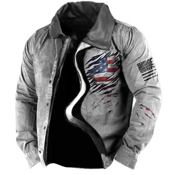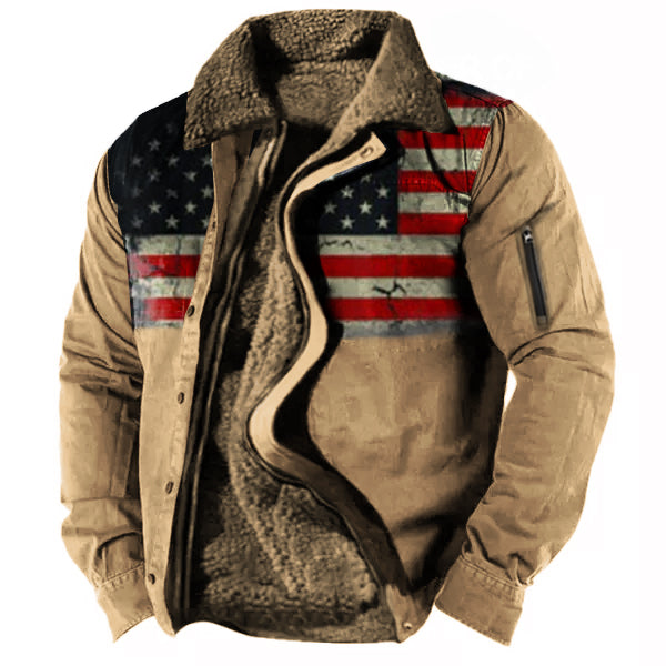 Men's Vintage American Flag Print Lining Plus Fleece Coat Outdoor Tactical Jacket