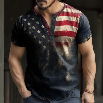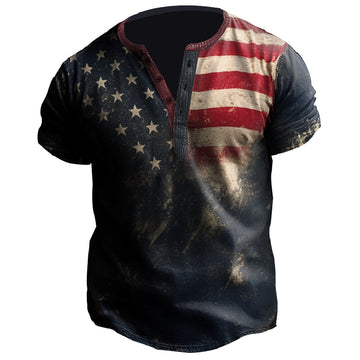 Men's 1776 American Flag Print Henley Collar T-Shirt