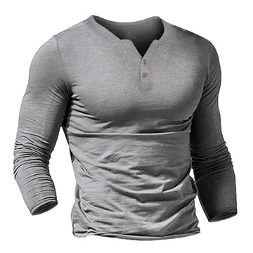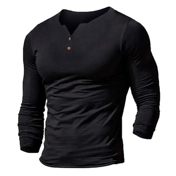 Men's Casual Solid Color V-neck Long Sleeve Top