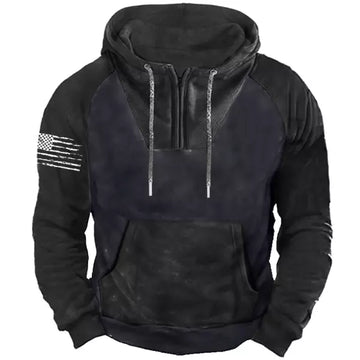 Men's Vintage Patchwork Zipper Half-turtleneck Hoodie