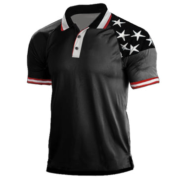 Men's 1776 Independence Day American Flag Print Patriotic Polo Long-Sleeve Shirt