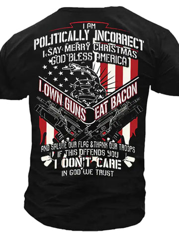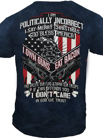 Men's Outdoor Retro Stressed American Flag Graphic Print Short-sleeved T-shirt