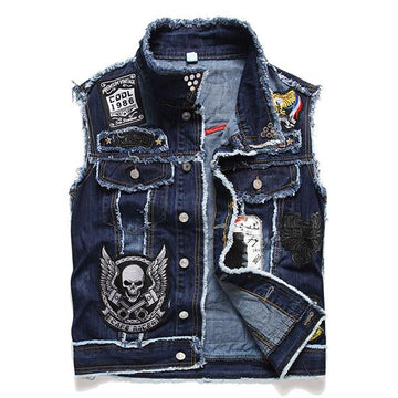 Product Highlights Soft denim fabric Classic lapel collar Sleeveless Washing and sanding process Six-button placket. metal buttons Embroidered patch Collar rivet decoration Hand wash only Unique DesignUnlike other denim vest. the Men's Washed Embroidered Skull Denim Vest comes in unique design - fashionable embroidered patch...