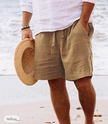 Men's Linen Shorts Casual Elastic Waist Drawstring Summer Beach Shorts