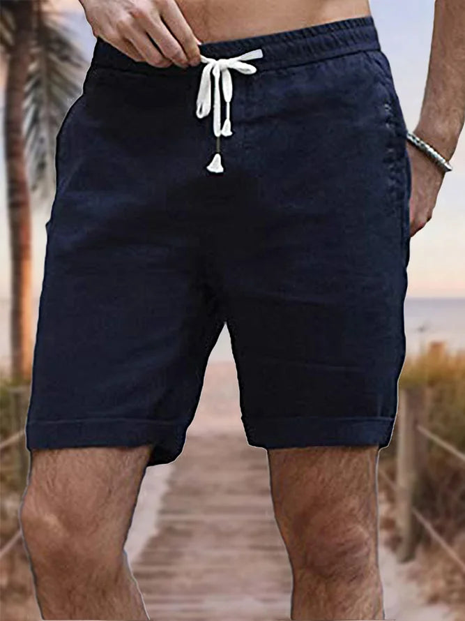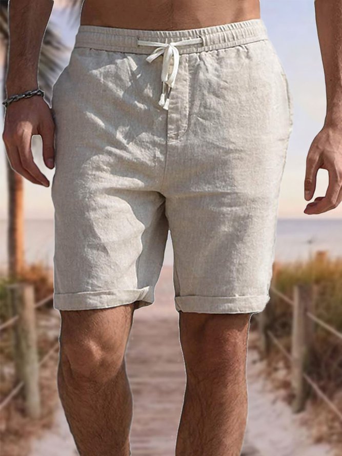 Men's Cotton Linen Style Elastic Waist Casual Shorts