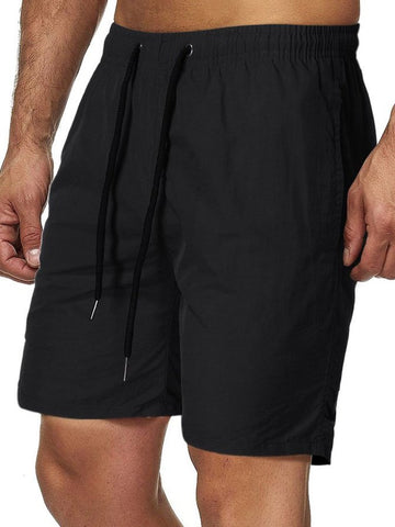 MEN'S SOLID STRAIGHT ELASTIC WAIST CASUAL SHORTS