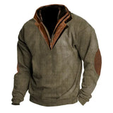 Men's Outdoor Casual Zip Polo Stand Collar Long Sleeve Sweatshirt Double Layer Lapel Fur Leather Collar Pullover