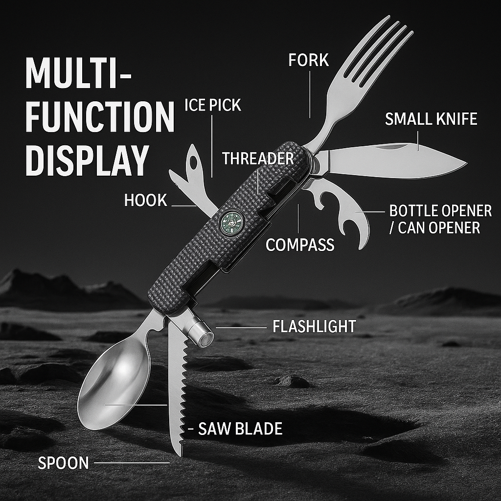 All-in-One Outdoor Companion – Multifunctional Stainless Steel Utensil Set
