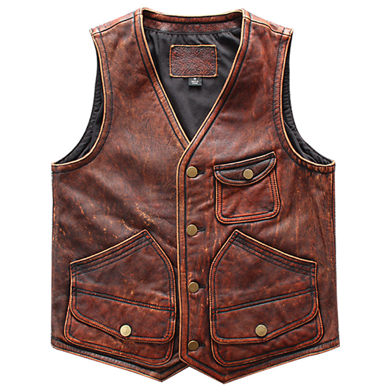 Motorcycle Enthusiasts! Want tocreate a layered outfit? Amekaji Men's Anarchist Leather Vest is a good choice for you. Wearing a leather vest will expose your underlying shirt or top. Along sleeve shirt or sweatshirt with a good vest is enough to keep you warm when riding in cold temperatures.