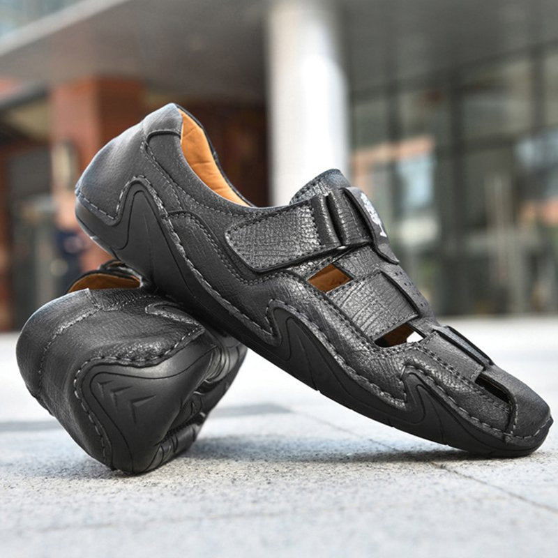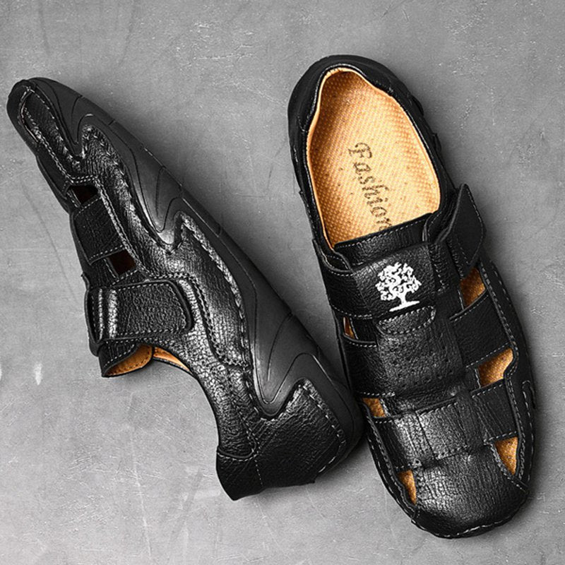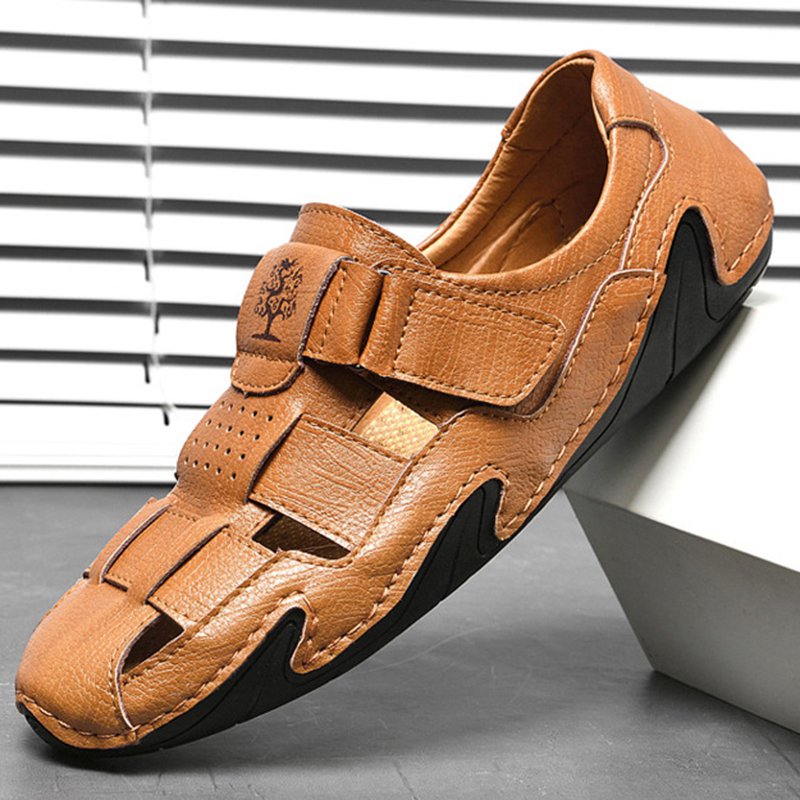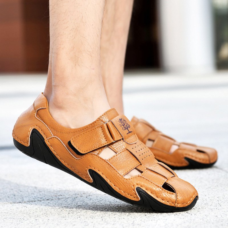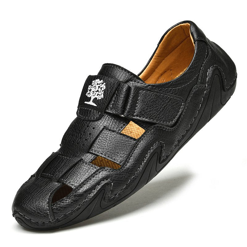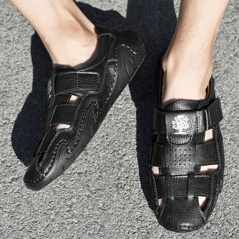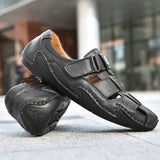 Men Summer Cow Split Leather Magic Tape Casual Sandals Shoes