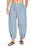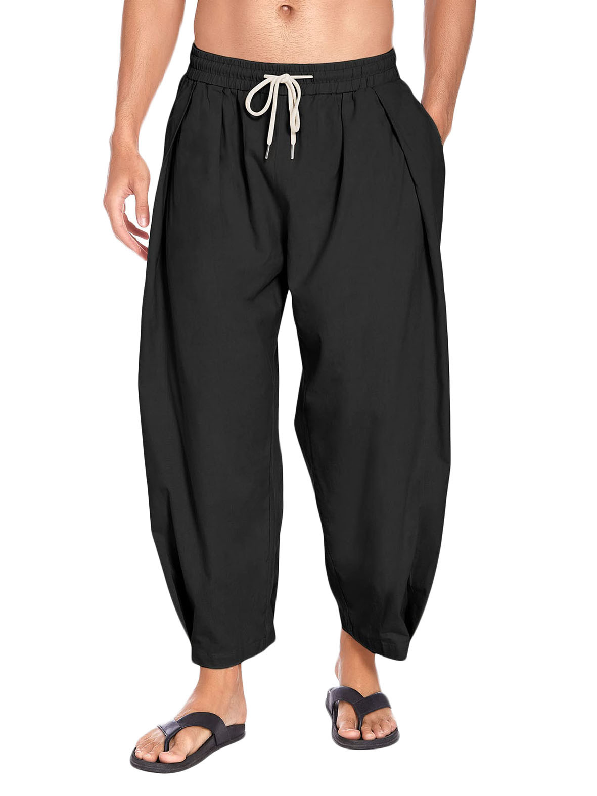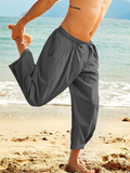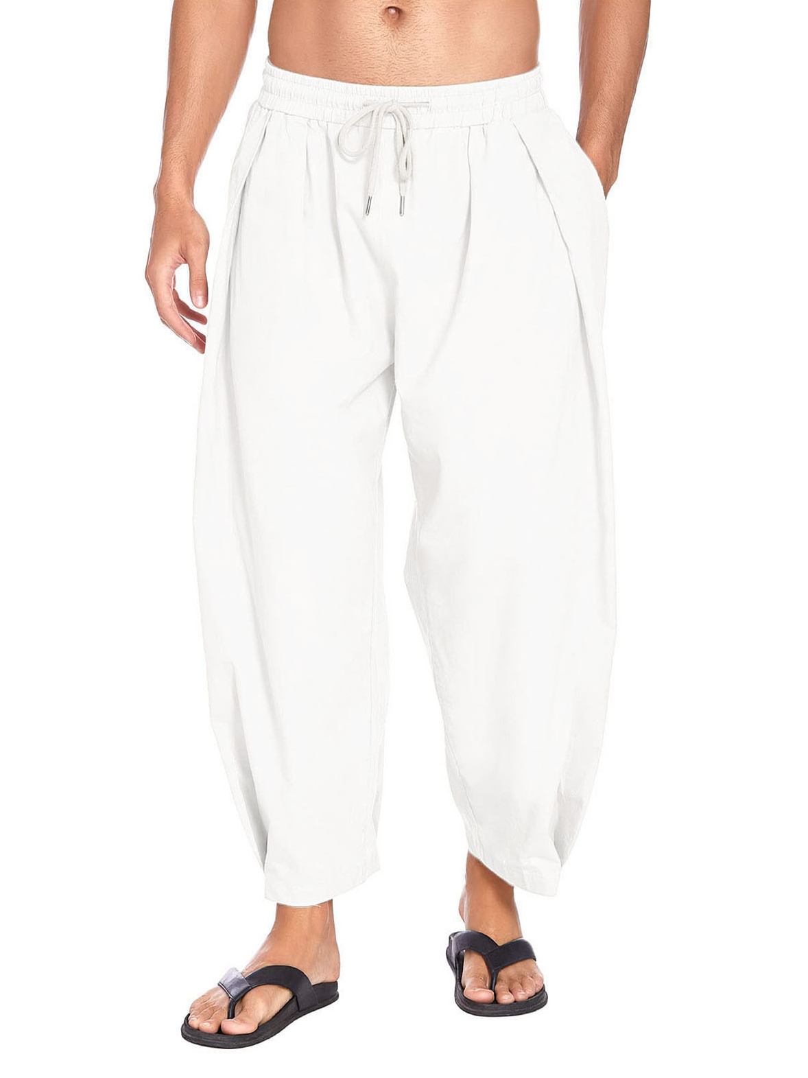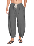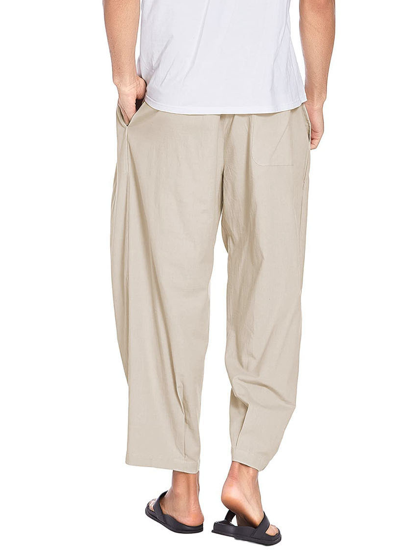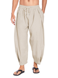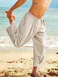 Men's Elastic Waist Cotton Linen Drawstring Casual Pants