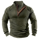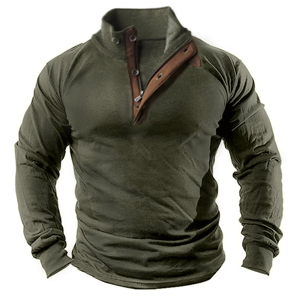 Men's Retro Contrast Henley Stand Collar Long Sleeve T-Shirt