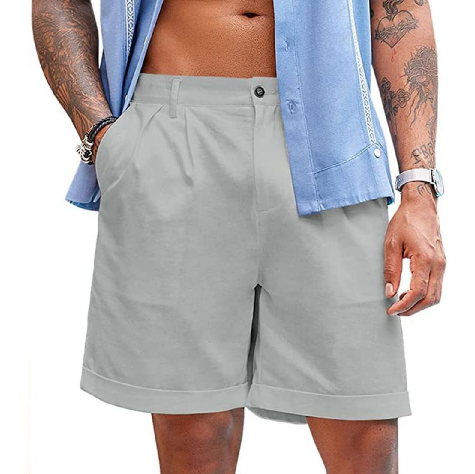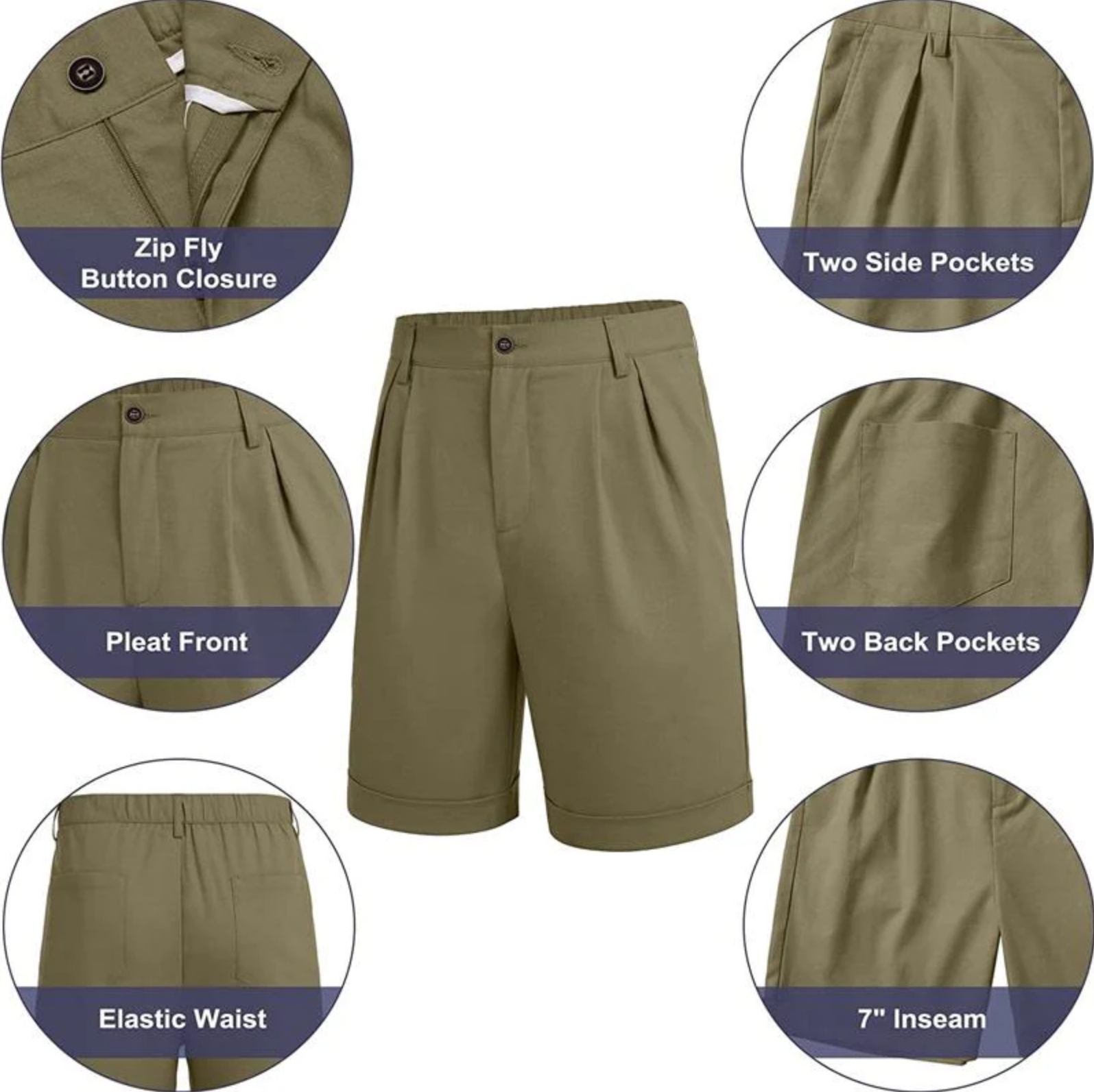 MEN'S SOLID STRAIGHT ELASTIC WAIST CASUAL SHORTS