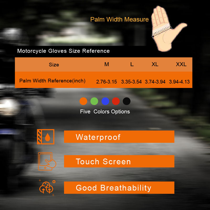 - Our Motorcycle gloves come in orange. blue. green. red. black