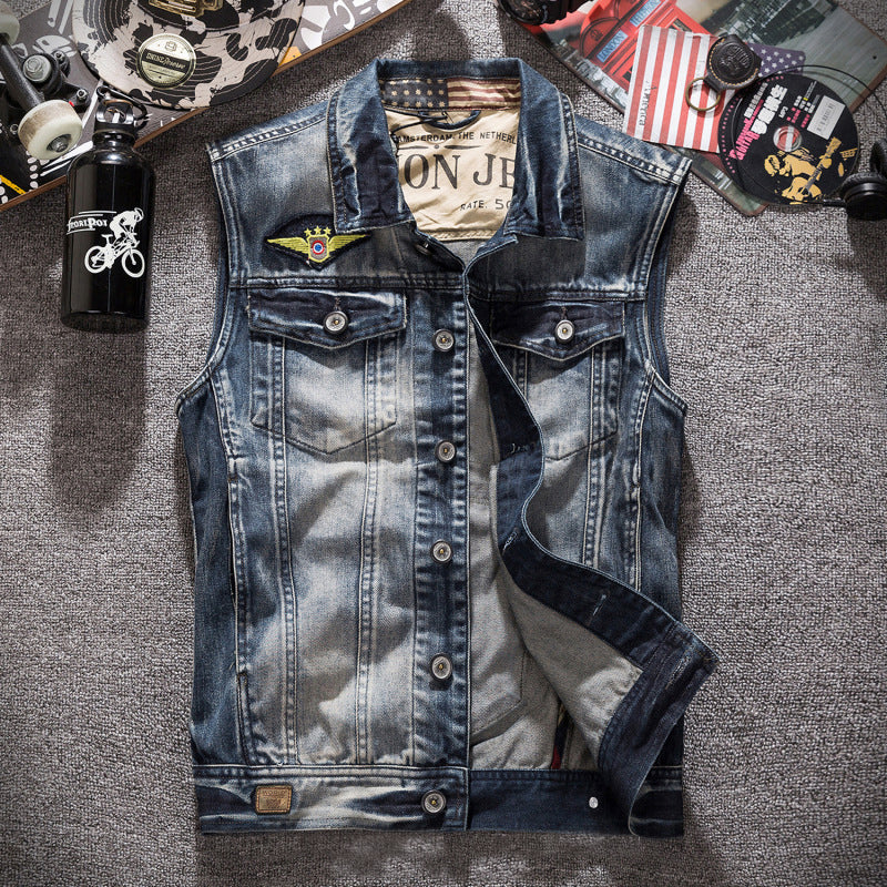 Motorcycle Distressed Denim Vest
