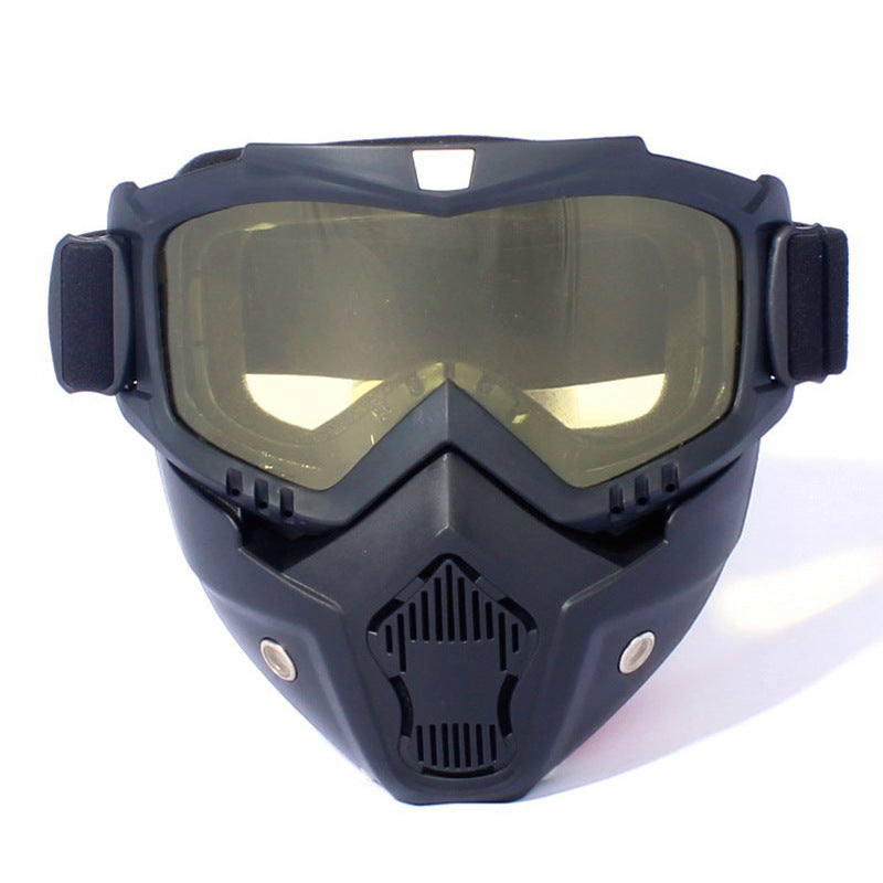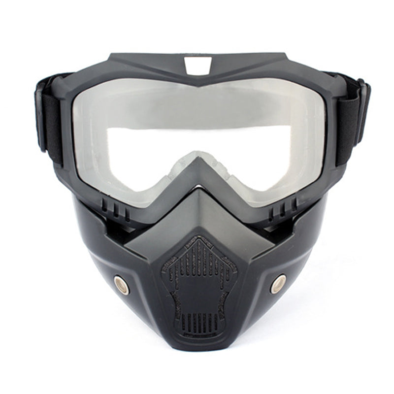 High-quality injection molded TPE construction. comfortable to wear with high-quality. detachable goggles. Perfect protection from sun. coldness. heat. dust. wind. insects. and injuries. A special wide comfort band allows you to wear it with all kinds of helmets. Suited for bikers.