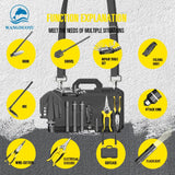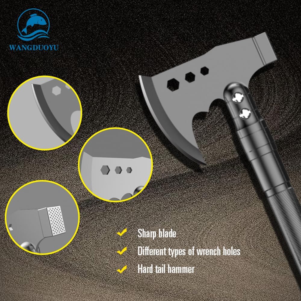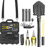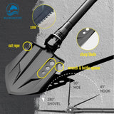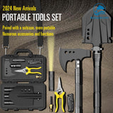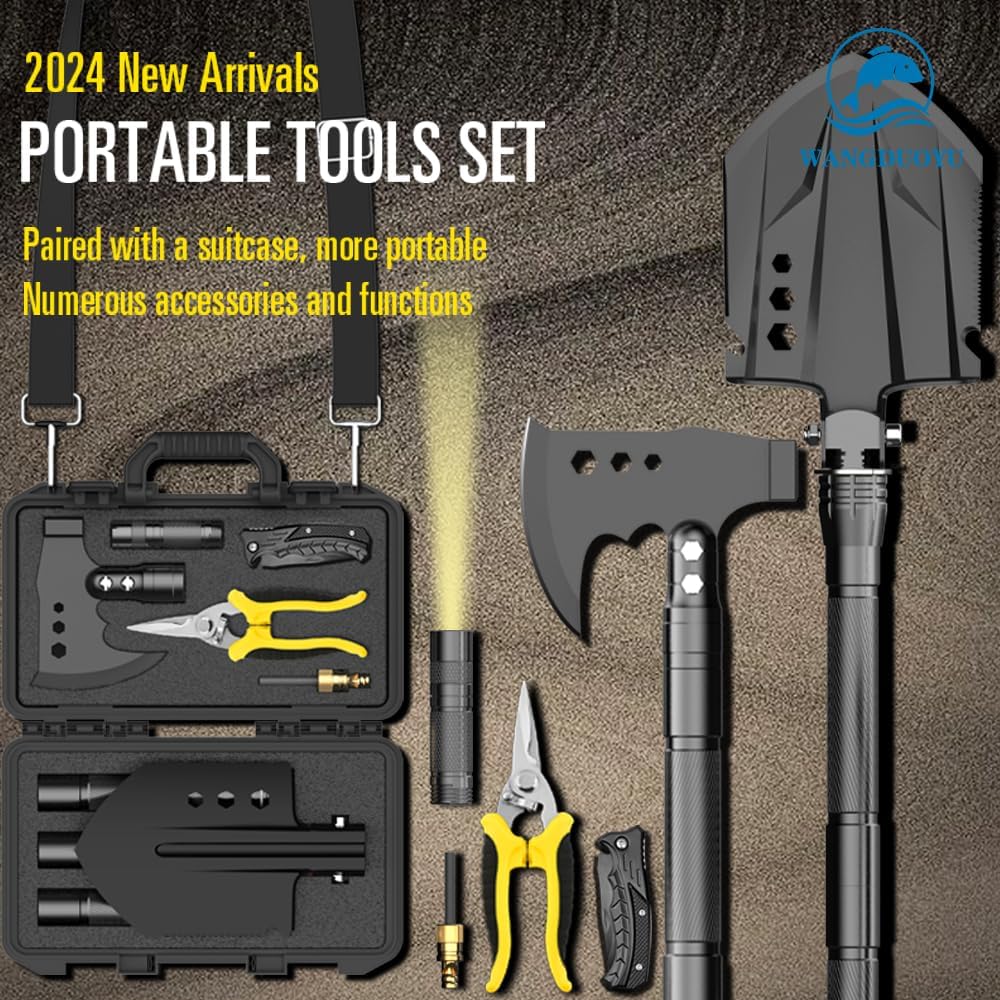 The multifunctional folding shovel set contains various tools, made of thickened high carbon steel, heat treated for high strength, combined with special coating, rust-resistant, wear-resistant and non-deformed.