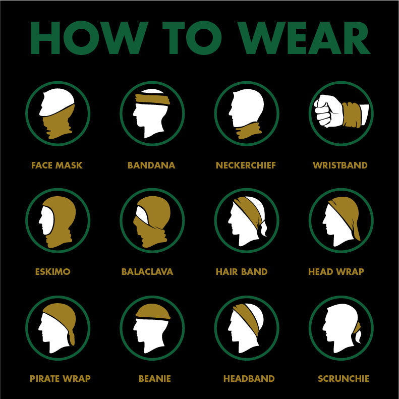 - Multi-functional: bandana. headwear. neck gaiter. face mask. balaclava. pirate hat. etc