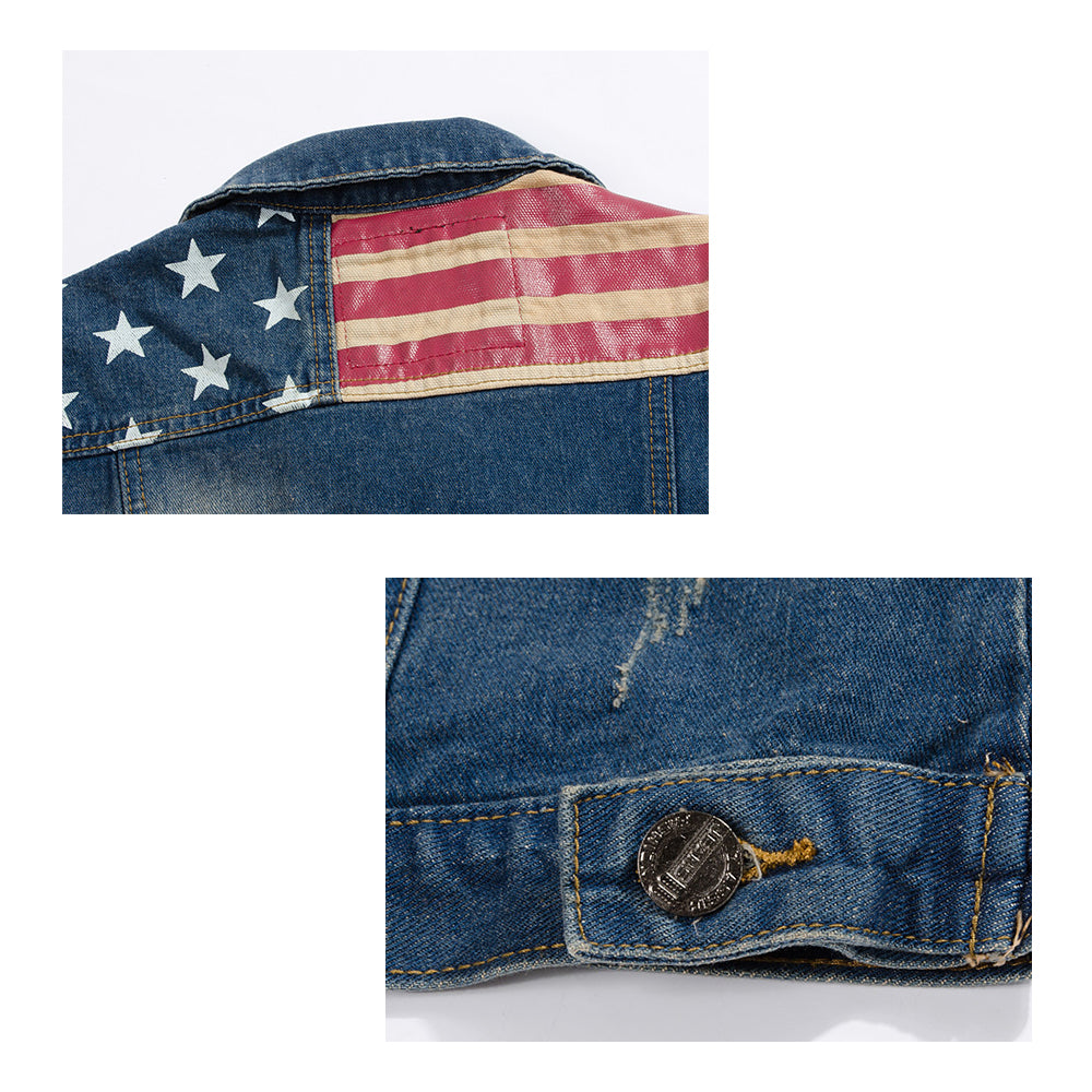 Motorcycle Enthusiasts! Want tocreate a layered outfit? Retro Patriotic Distressed Denim Vestis a good choice for you. Becausewearing adenim vest will expose your underlying shirt or top. Anelegant design denim vest. also suitable for parties. outside activities. dates. business work. and other casual occasions in all seasons.