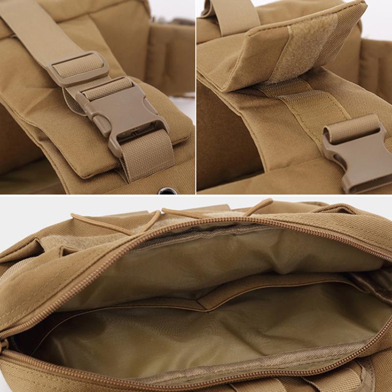 This tactical bag is equippedwith UTX-Duraflex quick release buckle. and the front strapsand belly strapsof dog backpackareadjustable