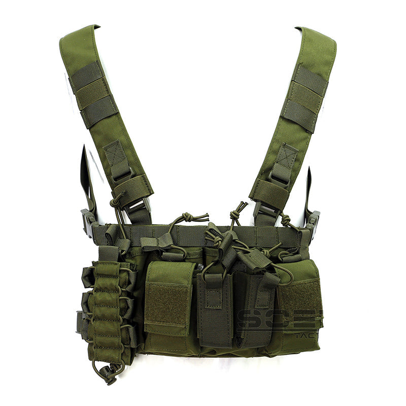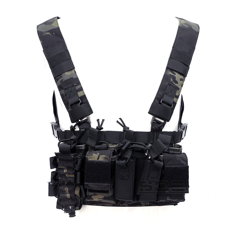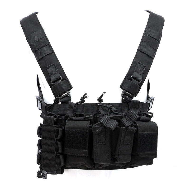 The adjustable. customizableChest Rig is completely versatile to cater to your mission. Its simplistic design is ideal for operators using an AR/pistol combination. Each part of the Chest Rig could be adjusted and replaced with the same type of accessories. which highly improved the compatibility. Keeping comfort in mind. the Tactical Chest Rig also features padded straps with a mesh lining for optimized breathability and a customizable fit to ensure thevest won't bounce around when you're on the move.