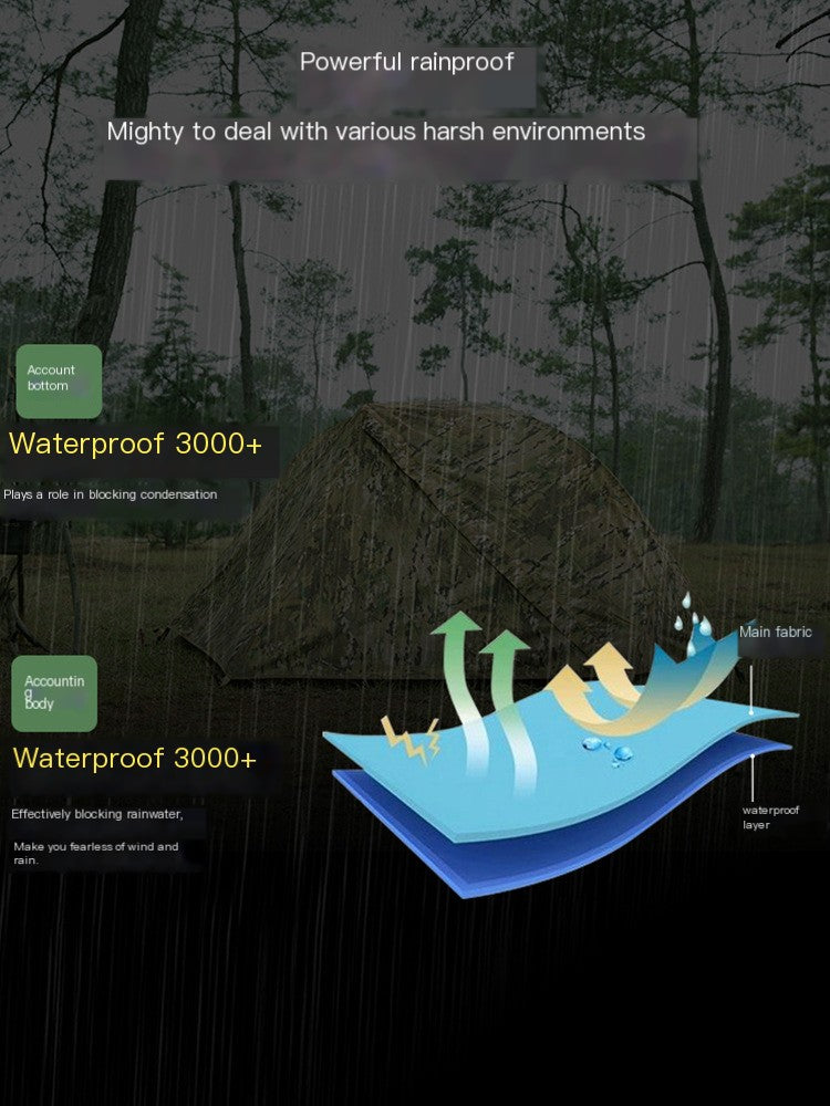 Whether you're trekking through forests, camping in the mountains, or prepping for a bug-out scenario, this ultralight solo tent delivers compact durability without sacrificing protection. Featuring a double-layer structure, it's both breathable and highly resistant to rain, wind, and rough terrain.