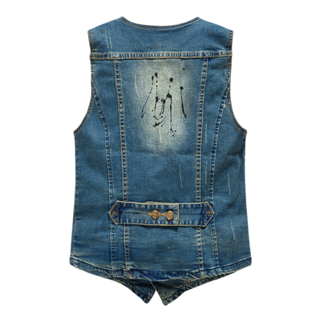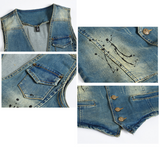 V Neck Distressed Denim Vest