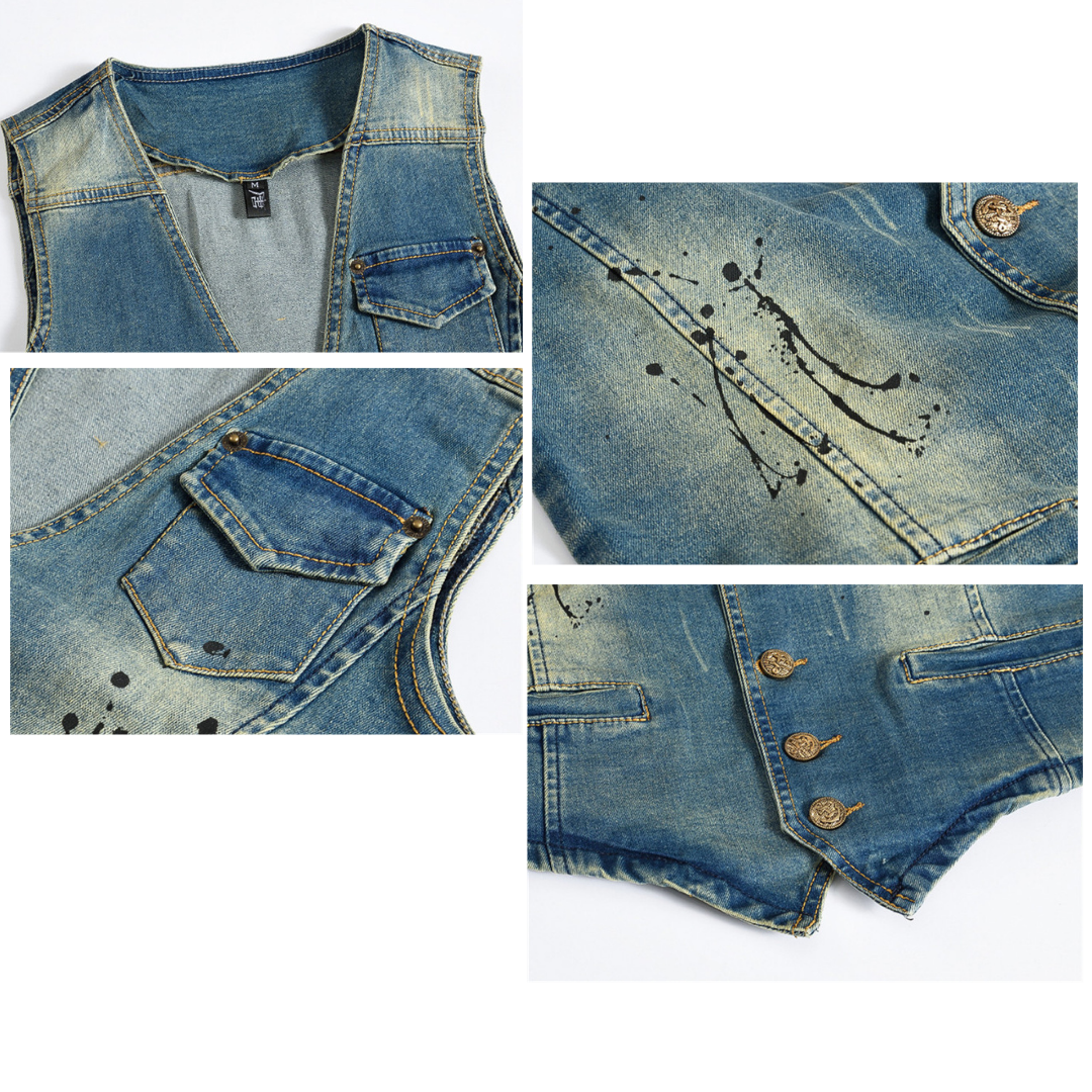 Motorcycle Enthusiasts! Want tocreate a layered outfit? V Neck Distressed Denim Vestis a good choice for you. Becausewearing adenim vest will expose your underlying shirt or top. Anelegant design denim vest. also suitable for parties. outside activities. dates. business work. and other casual occasions in all seasons.