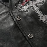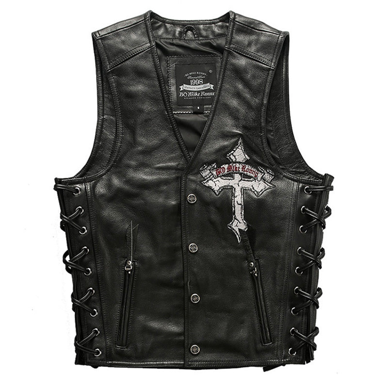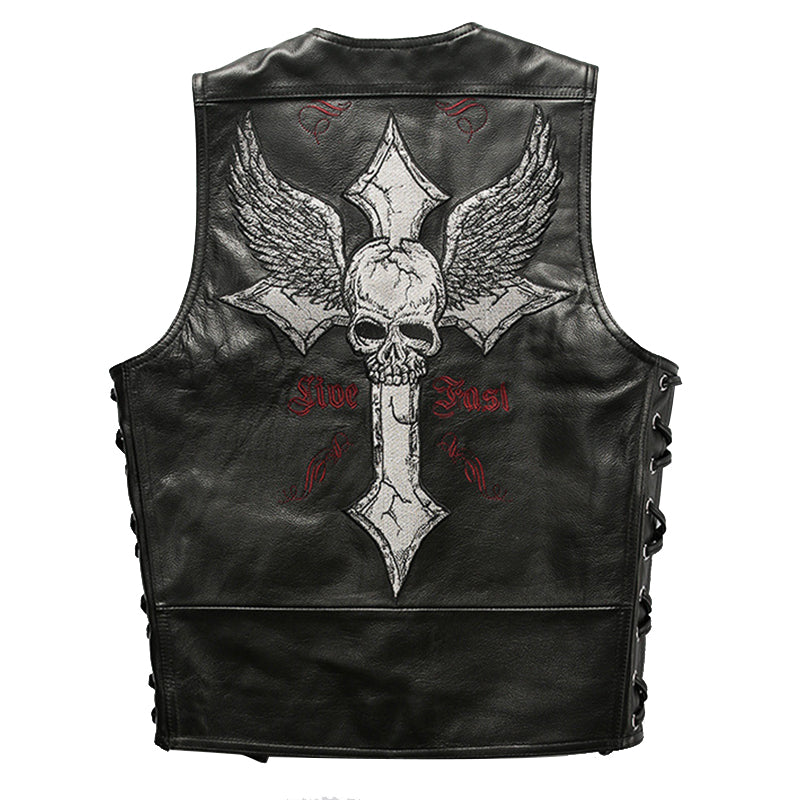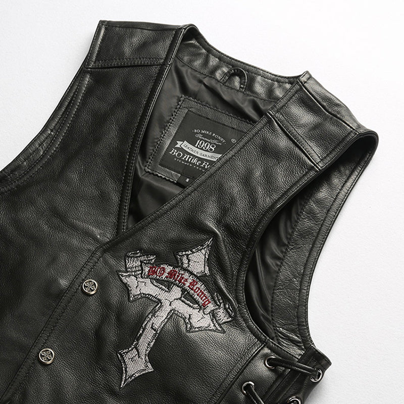 V-Neck Skull Cross Leather Vest