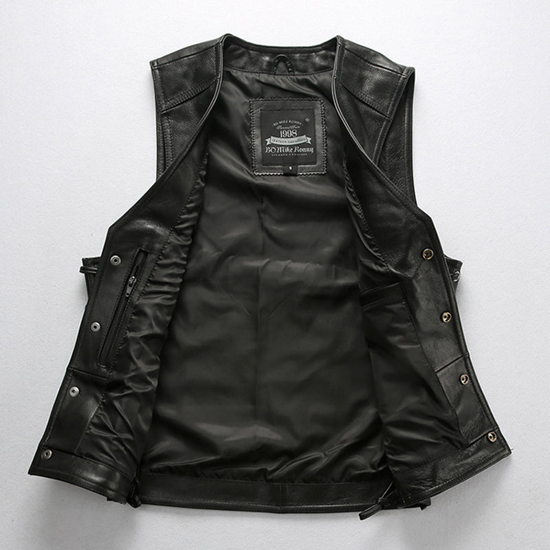Motorcycle Enthusiasts! Want tocreate a layered outfit?The V-Neck Skull Cross Leather Vestis a good choice for you. Becausewearing a leather vest will expose your underlying shirt or top. Along sleeve shirt or sweatshirt with a good vest is enough to keep you warm when riding in cold temperatures.