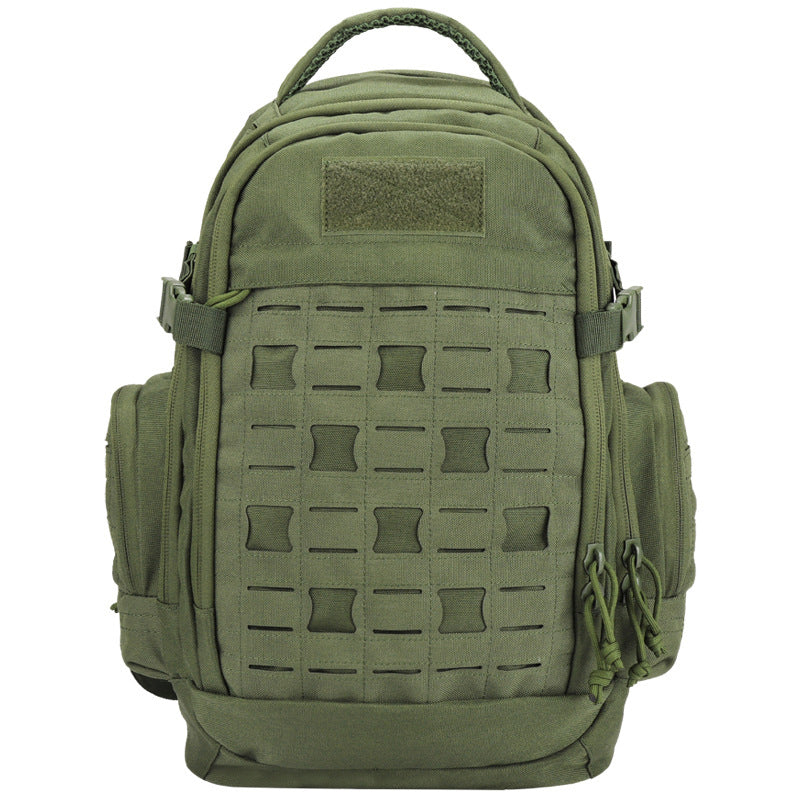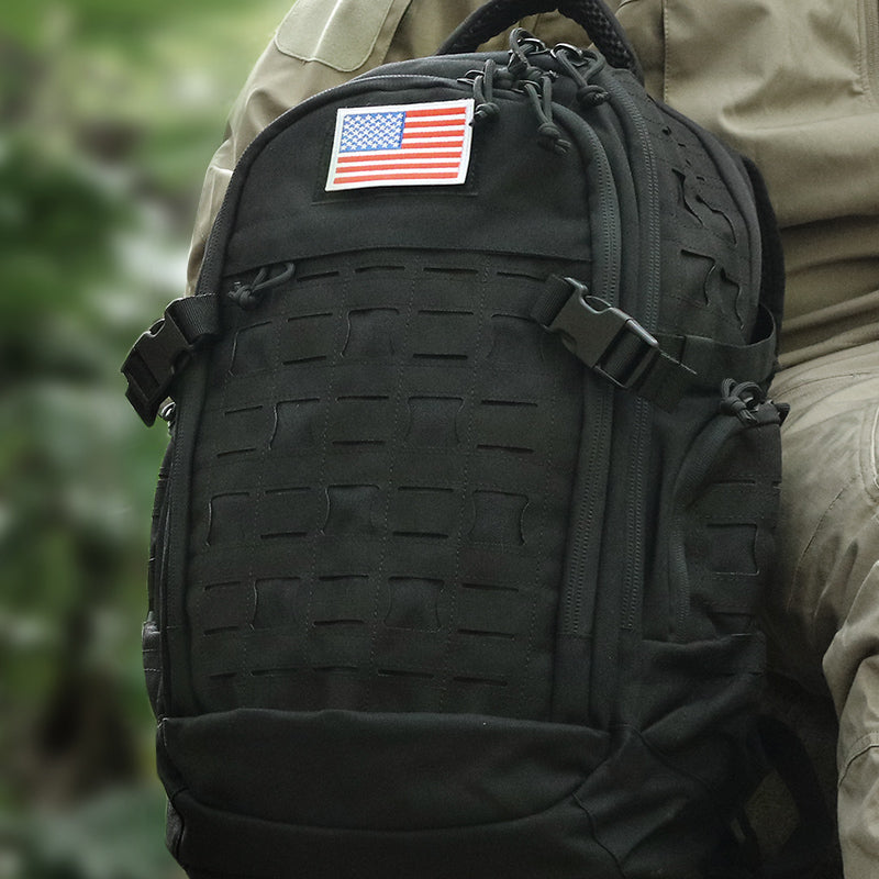 Rush 48 Tactical Mountaineering Backpack is designed to hold enough gear for a48 hours mission. Made from rugged. water-resistant nylon. this pack keeps your gear secure and dry. The shoulder. sternum. and waist straps adjust to provide a custom fit. The yoke system in the shoulder straps distributes weight evenly and thick padding increases comfort. Four pads on the back ventilate and support. while tacky rubber prevents the pack from jostling around when you're on the move. The spacious main storage compartments provide ample storage for big items. while smaller zippered pockets. key chain fobs and pockets with retention straps organize smaller gear.